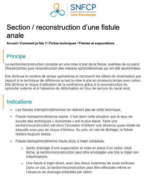 Section reconstruction d´une fistule-anale